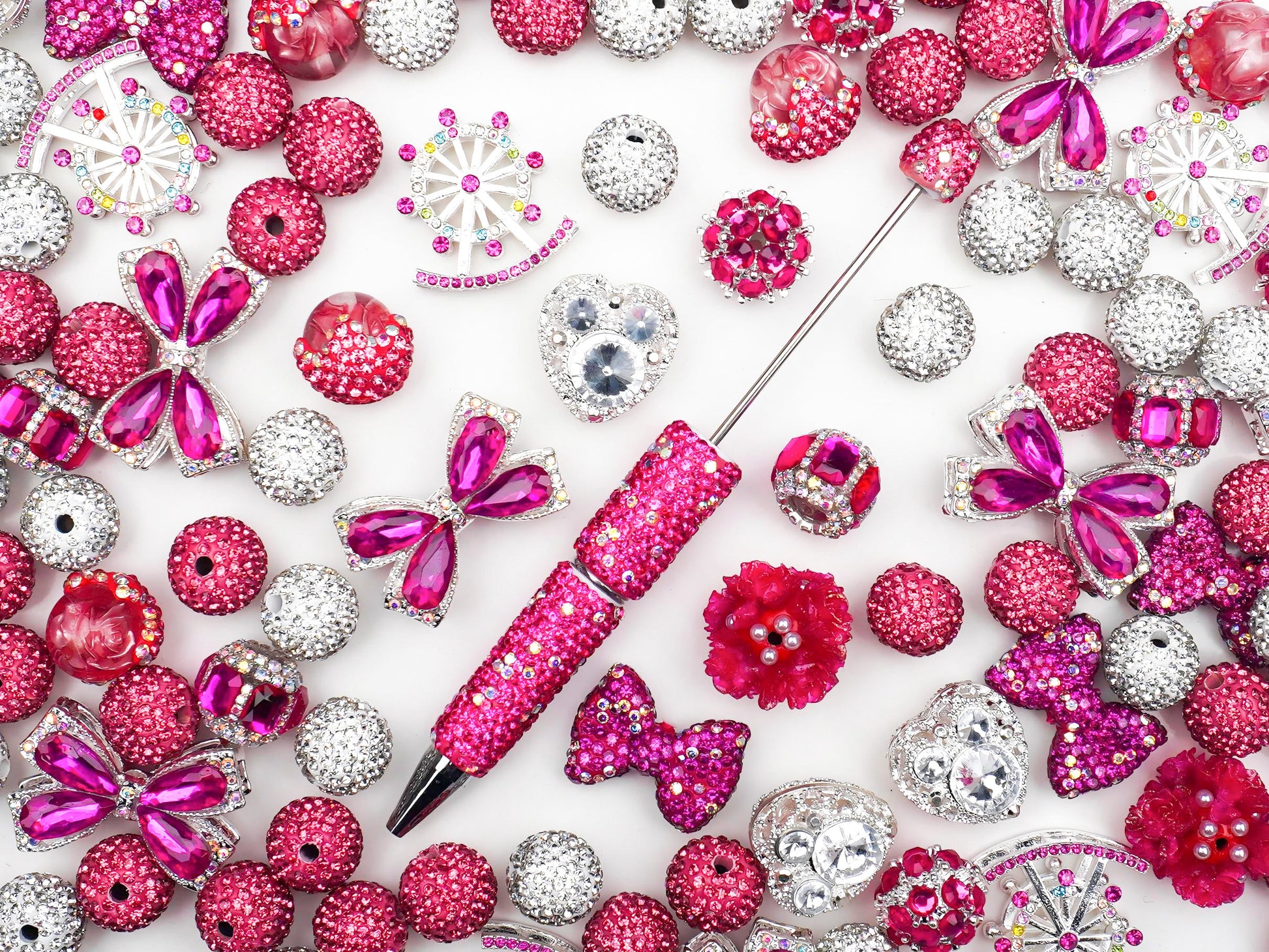 Main Character Energy in Every Bead Get ready to obsess over Berry Sweet, the ultimate charm mix for anyone living for that bold, unapologetic pink aesthetic. This collection is a total mood, blending high-shine silver accents with the most vibrant berry and fuchsia tones you've ever seen. From darling rhinestone bows that give major coquette vibes to whimsical Ferris wheel charms, every piece is curated to help you create accessories that look like they stepped straight off a fashion week mood board. It’s sweet, it’s sassy, and it’s the pop of color your jewelry rotation has been manifesting.