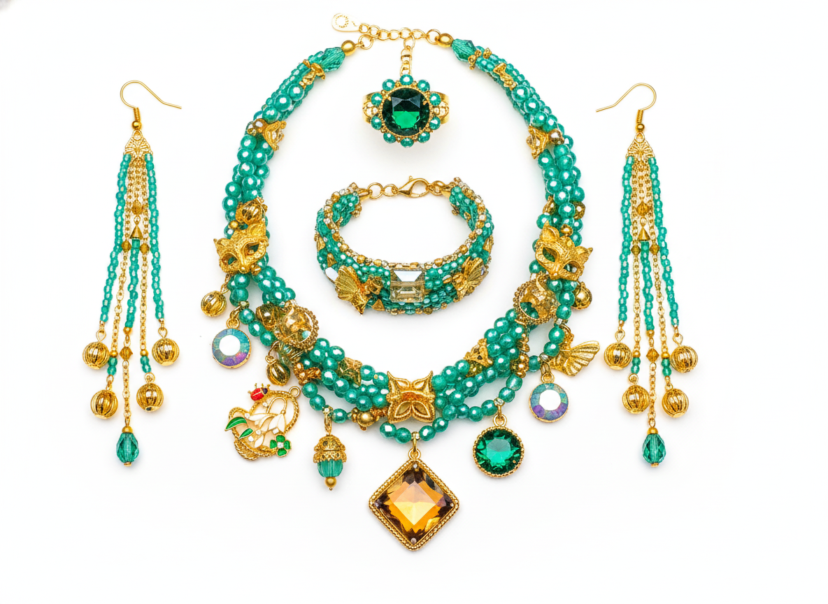 #MasqueradeMood #DIYJewelry #EmeraldAesthetic #VogueStyle #CraftInStyle