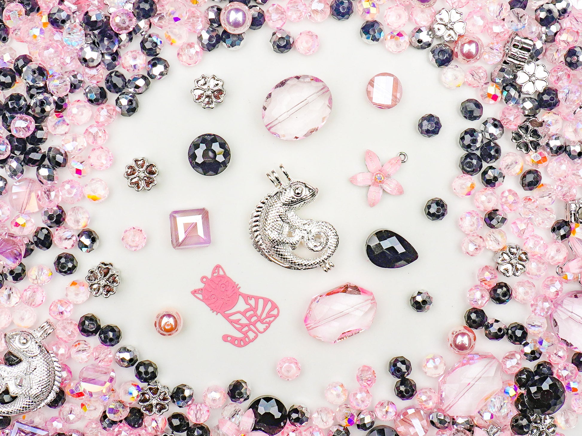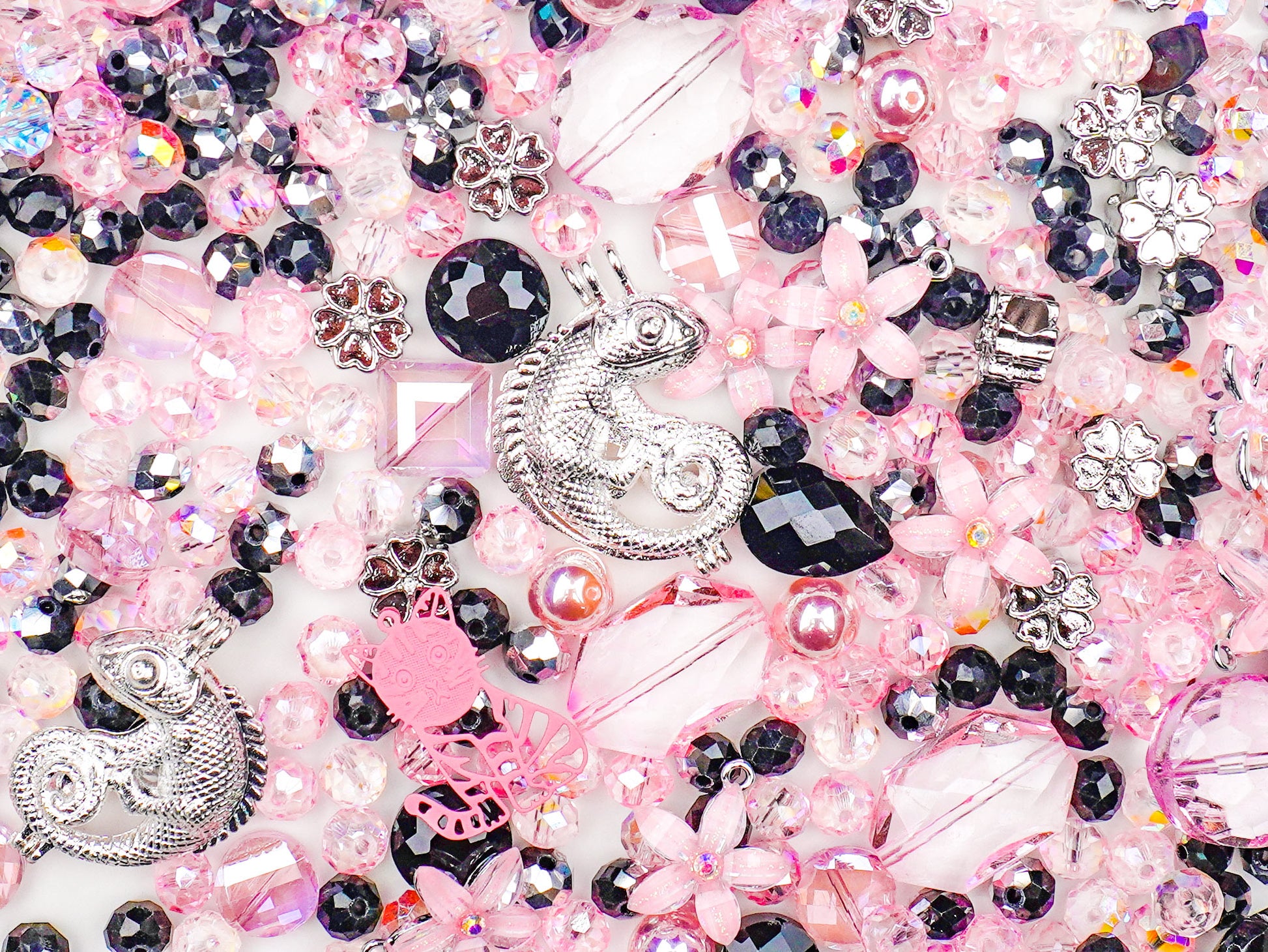 Every charm in this set tells its own story—from glittery petals to bold faceted stones—making it perfect for creators who love mixing cute aesthetics with a rebel twist. It’s dreamy, bold, and totally wearable for bracelets, keychains, phone straps, and more. ✨
