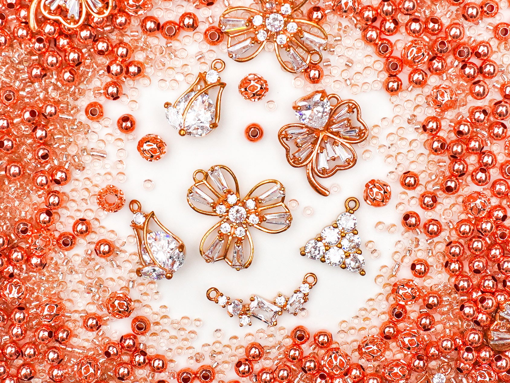 Step into a burst of sunshine and elegance with Lush Moment. This mix glows with juicy shades of orange, green, and gold, bringing together crystal brilliance and royal charm. ✨ The medallion-style charms, gem-cut droplets, and vintage florals create a look that’s vibrant yet timeless — like the perfect summer afternoon bottled up in beads.