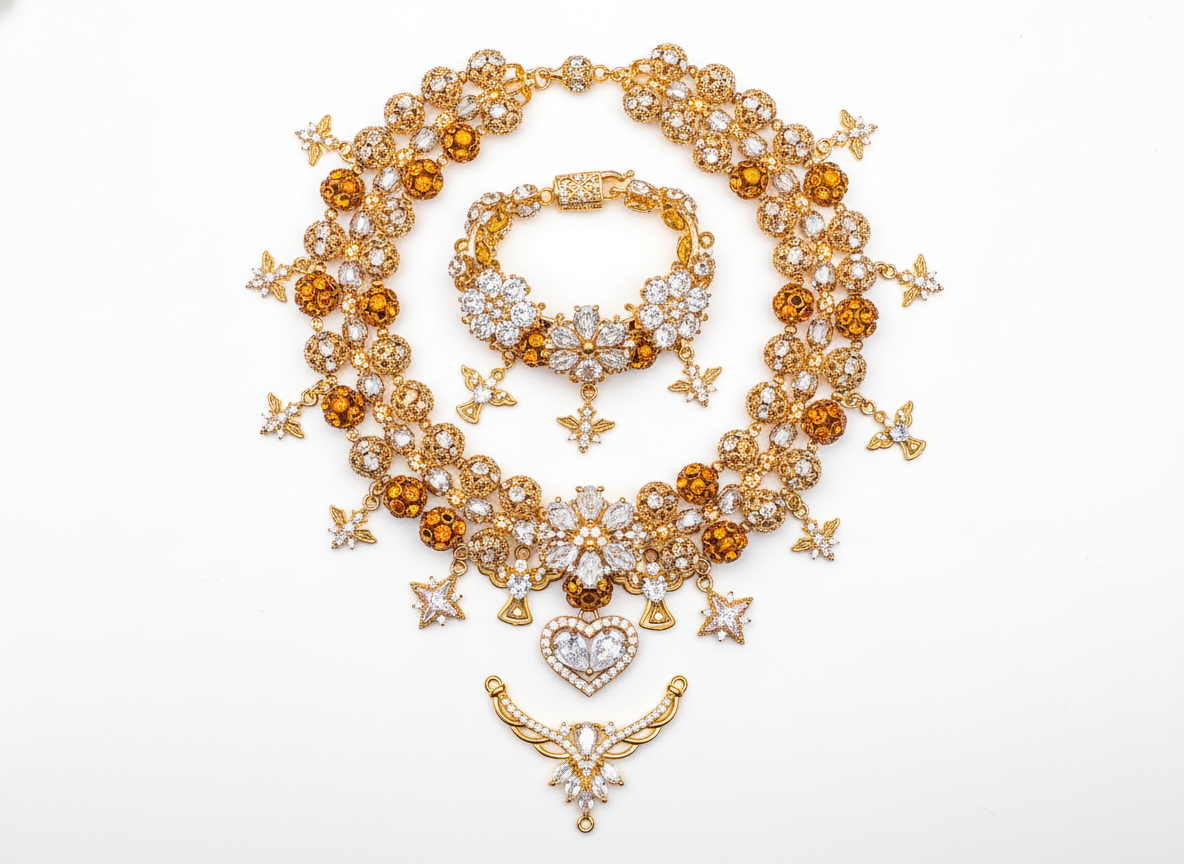 Each piece feels like it belongs on a red-carpet moment — glowing gold bases, icy white stones, sculpted stars, and sparkling clusters that scream main-character energy. Whether you’re styling jewelry, keychains, or makeup-bag charms, this set instantly elevates your vibe.