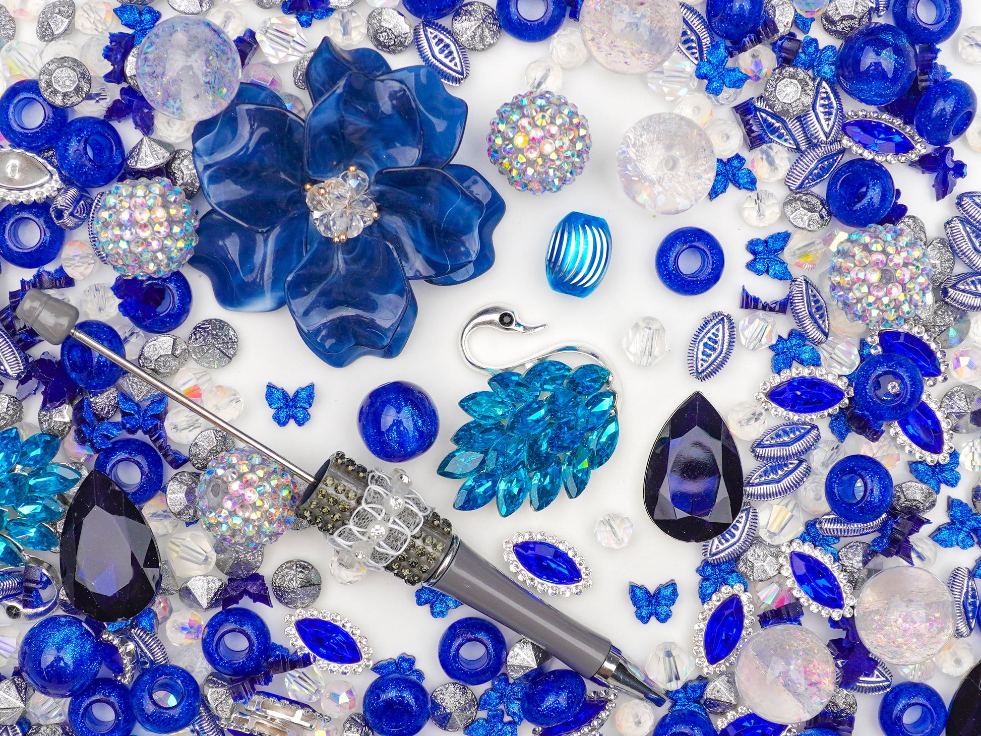 The mix radiates cool elegance — perfect for those who love chic, celestial-inspired designs. It balances glamour and calmness, making it ideal for dreamy statement jewelry or one-of-a-kind pen decorations. 💫