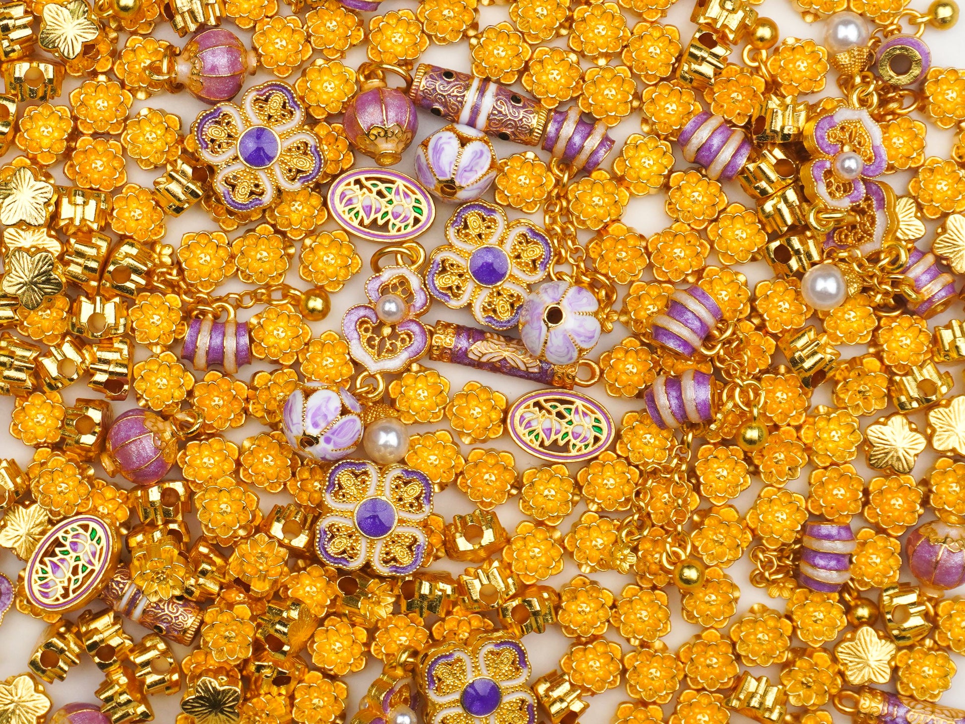 We are low-key obsessed with the stunning gold filigree butterflies and delicate yellow enamel flowers that give this a total Vogue editorial feel. It’s a runway-meets-resort wear vibe, featuring brilliant faceted crystals and rhinestone-encrusted spheres that sparkle intensely, ready to elevate your DIY stack to high-fashion status. 🦋👑