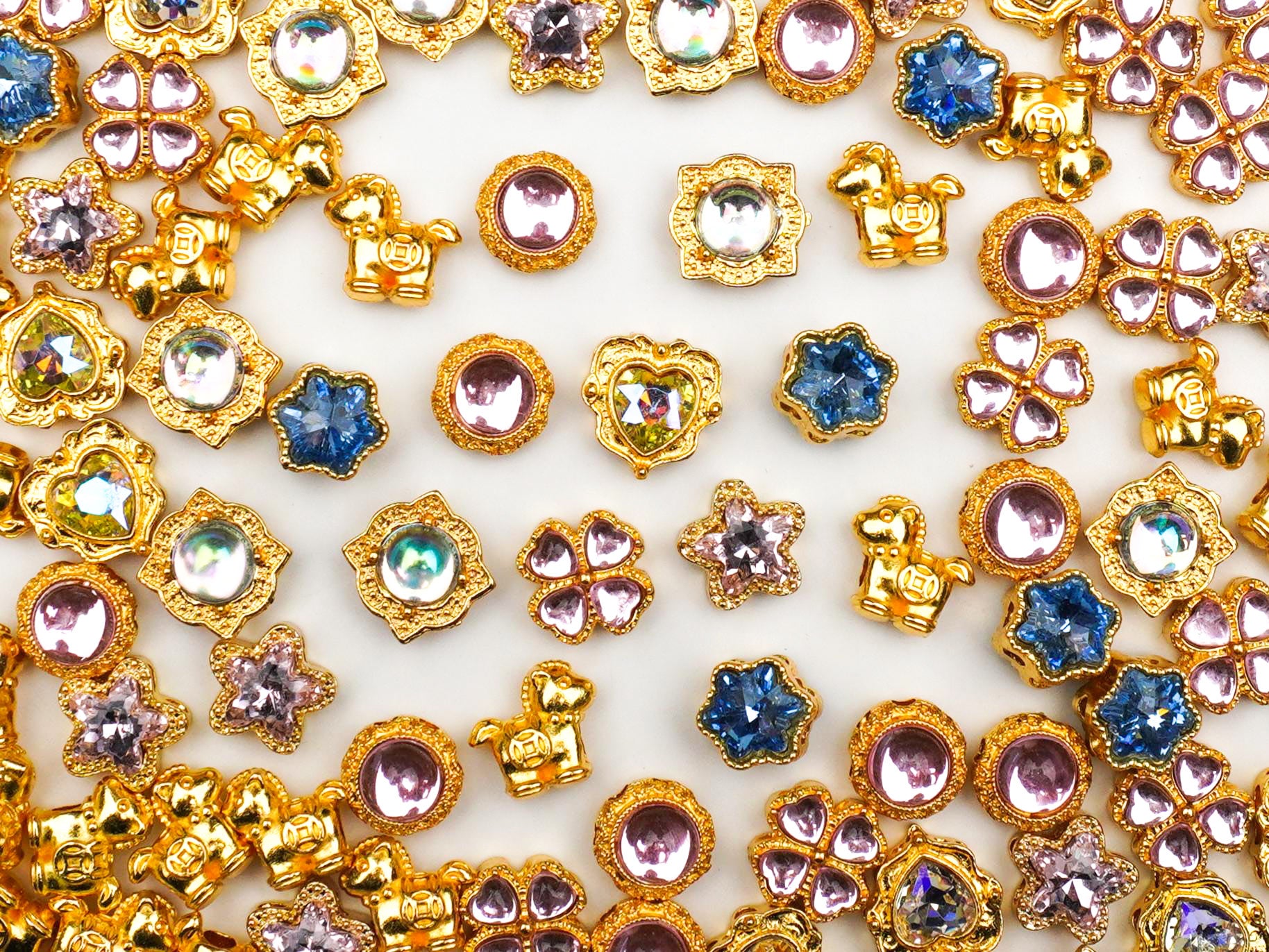 Get ready to indulge your jewelry cravings with Candy Stash, the ultimate "it-girl" collection for anyone obsessed with that dreamy, maximalist sparkle! 🍭 This mix is giving major "Main Character" energy, featuring gold-drenched lucky ponies, shimmering hearts, and crystalline stars that look like high-fashion treats fresh out of a designer boutique. Whether you’re building a chunky charm necklace or a Y2K-inspired phone strap, these pieces bring that perfect pop of color and Dopamine Dressing magic to every creation. ✨
