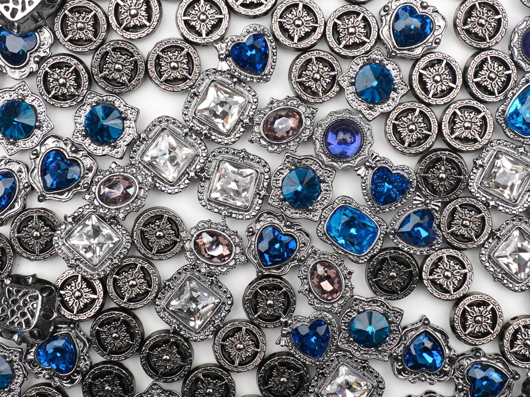 Unlock your "cool-girl" peak with Arctic Aura, the ultimate mix for that frosty, high-fashion aesthetic! ✨ Drawing inspo from the Neo Deco trend, this collection pairs deep slate blues and crystal clears with sculptural gunmetal frames that feel like a high-end archive find. With its edgy heart charms and sharp geometric pendants, it’s giving major Main Character energy for anyone obsessed with that icy, futuristic glow. ❄️