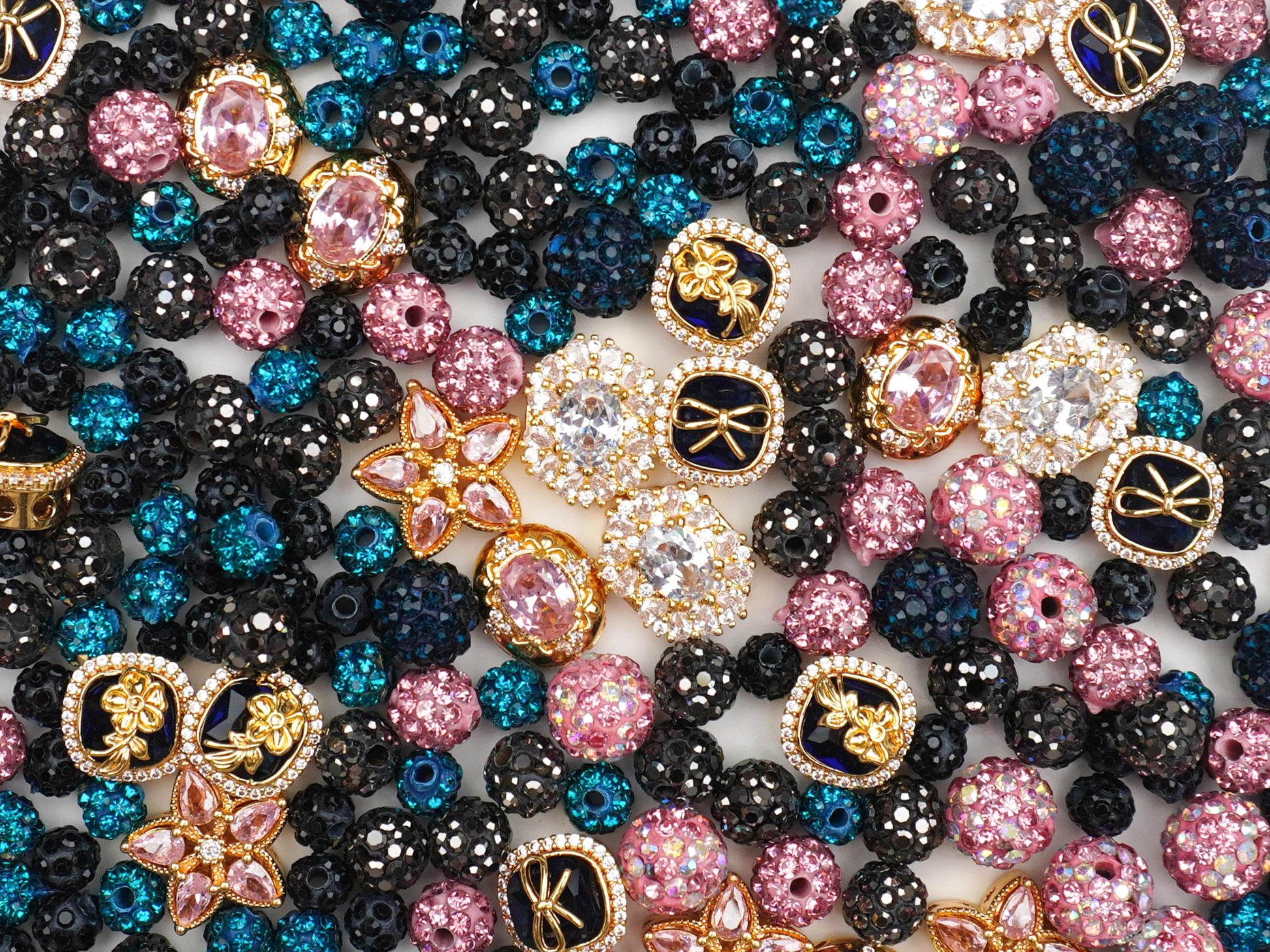 This mix is the ultimate Midnight Inspiration for your next DIY masterpiece! 🌌 It’s giving major "Mob Wife Winter" energy with a side of Coquette sweetness. We’ve curated a moody yet high-glam palette featuring deep navy enamel, edgy onyx-toned disco beads, and pops of romantic blush pink. The charms are total showstoppers—think vintage-inspired golden bows, regal floral crests, and shimmering starbursts that look like they stepped off a Parisian runway. 🎀✨